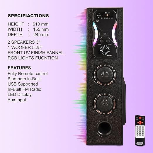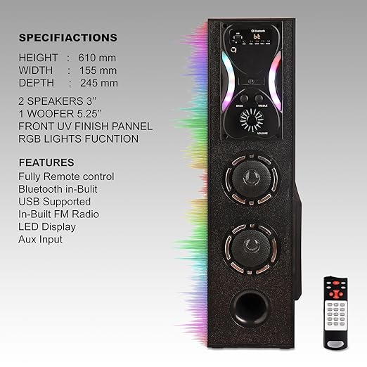 JXL TS500 70 Watt Bluetooth Tower Speaker Wooden Cabinet Subwoofer Echo Sound Control Full Control Remote Led Display USB FM Party Speaker Home Theatre Extreme bass Karaoke Support (Black)
