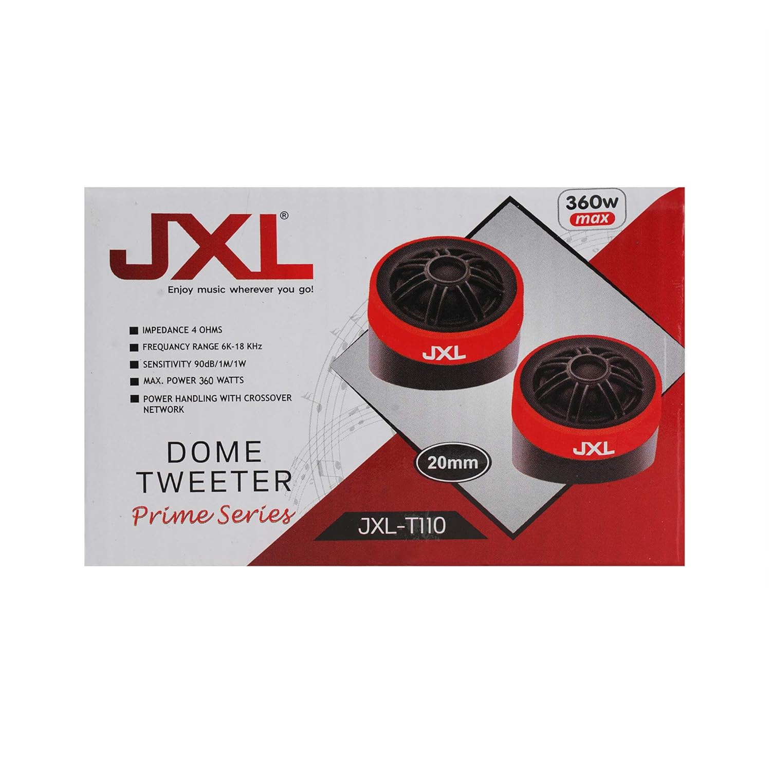 JXL -T110 High Efficiency Dome Car Tweeter for Coaxial Car Speaker 360W MAX (Pair) Black, Best car speakers and tweeter brands in India